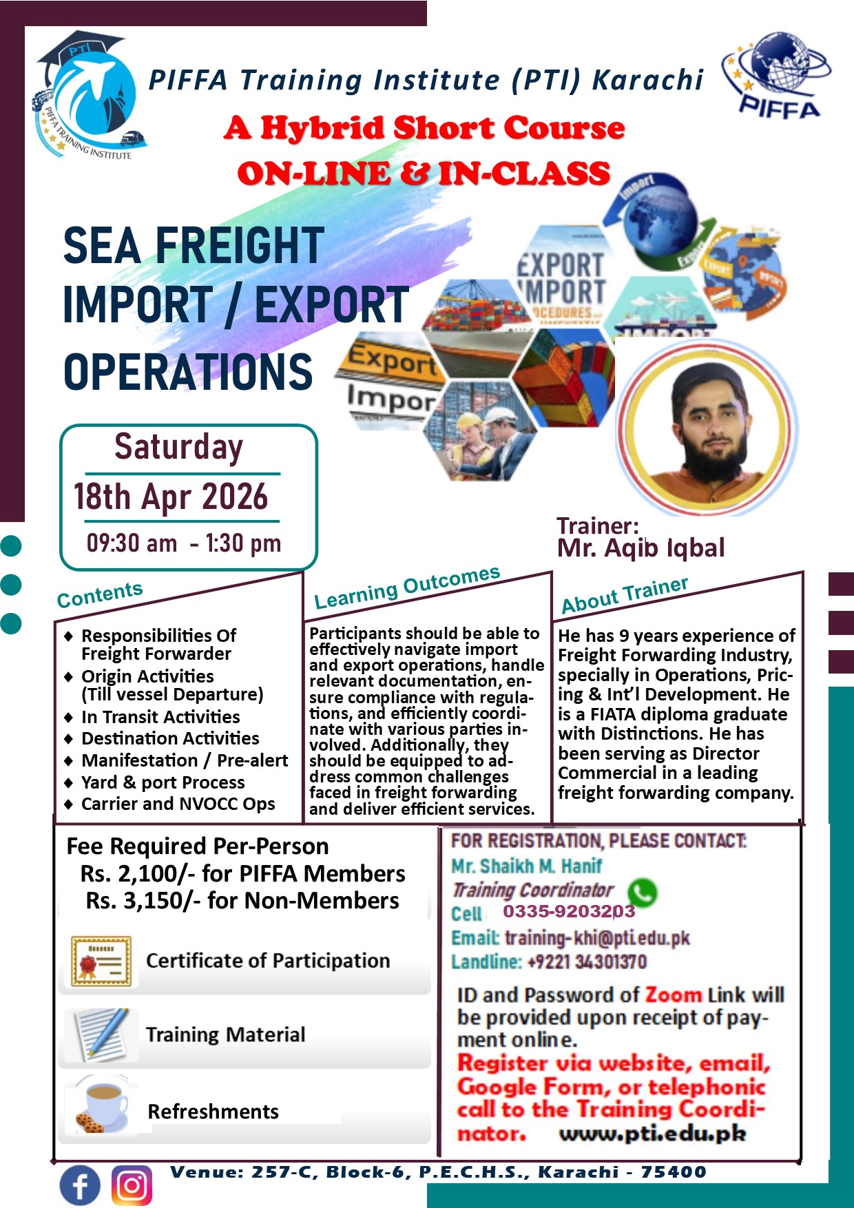 - Half Day Hybrid Course on Fundamentals of Intl Freight Forwarding